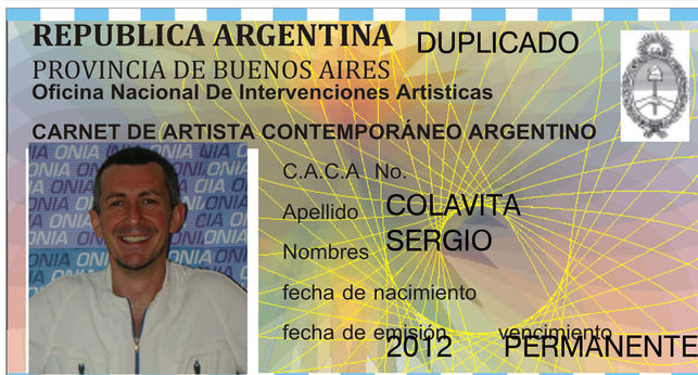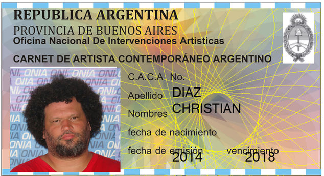 La acción consiste en la Entrega de el CACA, Carnet de Artista Contemporáneo Argentino. El mismo es emitido por Pipi y Sherman dos empleadas públicas en la oficina de la ONIA. El tramite es sencillo, se debe retirar un número, completar un formulario “Declaración jurada de Artista Contemporáneo Argentino”, y dejar que las empleadas tomen una foto carnet.